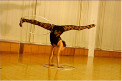 “呼啦圈”,在呼啦圈表演中,雜技演員運用嫻熟的表演技巧,看似隨意地扭動著身體,一個又一個的呼啦圈在演員的腰間轉動起舞,優(yōu)美的舞姿讓人眼花繚亂。演員邊搖動身體,邊接受新增加的呼啦圈,上百個呼啦圈在速度的驅動下變化出各種姿態(tài),讓你感受曲線的柔美。