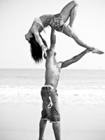 “肩上芭蕾”,在優(yōu)雅的音樂聲中,女演員在男演員的背上、雙肩、手掌和頭頂上輕靈地跳著芭蕾舞,將芭蕾這一西方的高雅藝術糅進西方雜技里,雜技變得優(yōu)雅浪漫,芭蕾變得驚險刺激,給人以耳目一新的視覺沖擊。