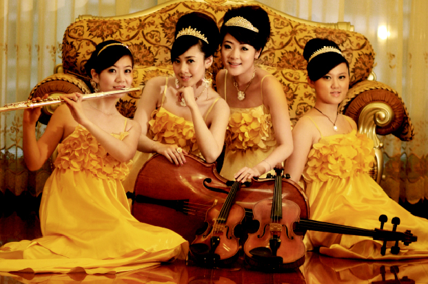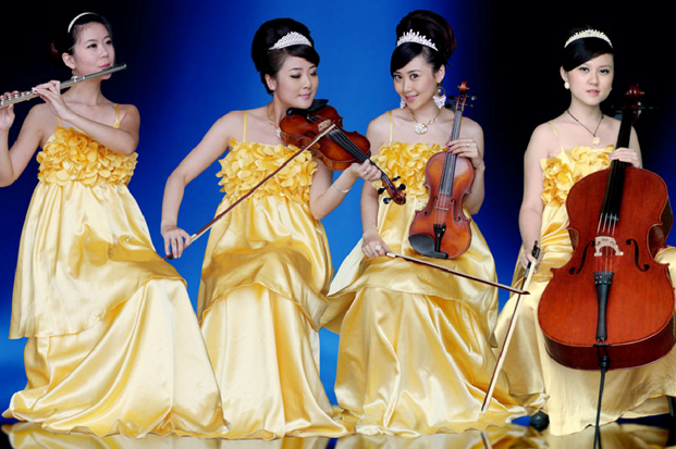 “舞動天使古典高雅重奏組合(Lovely Angel)”:由4個星海音樂學院的美女高才生組成. 不僅專業(yè)一流,形象美麗動人,還有著對音樂永不放棄,不斷創(chuàng)新的執(zhí)著,這是一幫對音樂有著共同的追求的可愛女生.