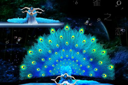 孔雀之戀華美昂貴的孔雀藍(lán)羽毛長裙,神秘華麗的深藍(lán)幻境森林視頻,空靈的音樂中唯美曼妙的舞姿,…
